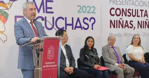 Morelia, Michoacan, 20 de febrero de 2023.– En el marco de la presentación de resultados de la Consulta Nacional a Niñas, Niños y Adolescentes “¿Me Escuchas? 2022”, el gobernador Alfredo Ramírez Bedolla, manifestó que es trabajo de las autoridades y funcionarios brindar apoyo, respuesta y acompañamiento a las necesidades de la población infantil.