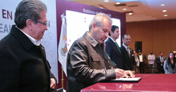 Morelia, Michoacán, 24 de febrero del 2023.– El gobernador Alfredo Ramírez Bedolla firmó el decreto de Promulgación de la Ley contra el Delito de Extorsión en Michoacán, con la finalidad de que entren en vigor las reformas a esta legislación aprobadas por el Congreso del Estado.