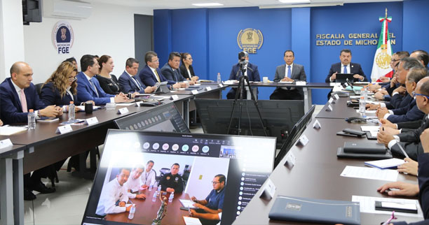 Morelia, Michoacán, a 7 de marzo de 2023.- En el marco de una reunión de trabajo con titulares de la institución, el Fiscal General del Estado de Michoacán, Adrián López Solís, manifestó la necesidad de que exista un frente común contra el delito de extorsión, que involucre la participación de todas las áreas de seguridad, pero principalmente de la sociedad a través de la denuncia.