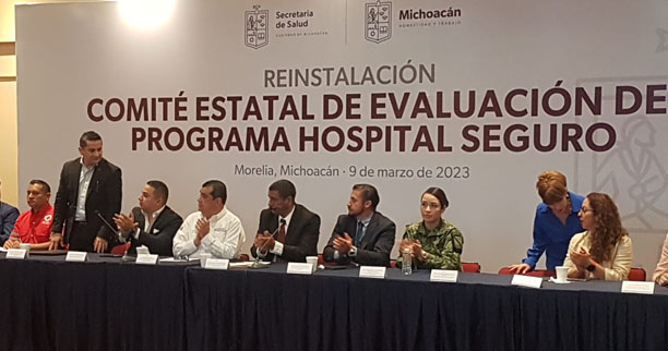 Morelia, Michoacán, 9 de marzo de 2023.- A fin de unificar los criterios en la implementación del programa Hospital Seguro, la Coordinación Estatal de Protección Civil en conjunto con la Secretaría de Salud llevaron a cabo la reinstalación del Comité Estatal de Evaluación de Hospital Seguro (CEEPHS).