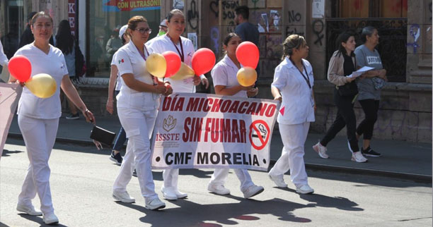 Con la participación de instituciones educativas del nivel básico, la Facultad de Medicina “Dr. Ignacio Chávez”, el Consejo Estatal contra las Adicciones, y la Comisión Estatal para la Protección contra Riesgos Sanitarios (Coepris), el contingenté se desplegó por la avenida Madero para concluir en la plaza Juárez, donde participantes se pronunciaron en pro de quienes no fuman.