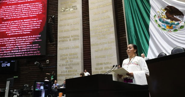 En el marco del acuerdo de la Cámara de Diputados para conceder la palabra a hablantes de las lenguas originarias de México, argumentó que las lenguas maternas son un ejemplo de la diversidad cultural de los pueblos; permiten que las historias y las leyendas de las raíces, comienzos y principios se sigan difundiendo.