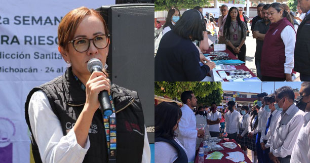 Morelia, Michoacán, 24 de abril de 2023.- Con el objetivo de crear conciencia en la población sobre la importancia de prevenir riesgos a la salud, la Secretaría de Salud de Michoacán (SSM), a través de la Comisión Estatal para la Protección contra Riesgos Sanitarios (Coepris), arrancó la Segunda Semana Nacional contra Riesgos Sanitarios, en la comunidad de Santiago Azajo, en el municipio de Coeneo.