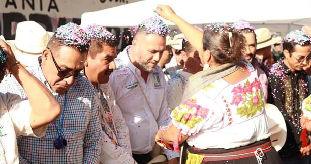 Recibieron a las autoridades municipales entre confeti, música y algarabía, les colocaron las tradicionales cuelgas, para posteriormente dar un alegre recorrido, por las calles de la comunidad de dicha localidad hasta llegar a la plaza.
