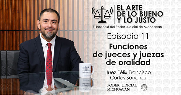 De esto y más habla Félix Francisco Cortés Sánchez, juez del sistema de justicia penal, acusatorio y oral, en la región Morelia, en el más reciente episodio del podcast “El arte de lo bueno y lo justo”.