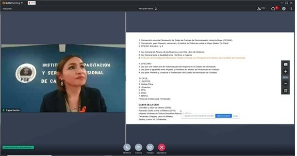 Atendiendo a este principio, a través del Instituto de Capacitación y Servicio Profesional de Carrera, impartió las ponencias “Prevención, atención, sanción y erradicación de la violencia contra niñas, adolescentes y mujeres” y “Armonización legislativa en materia de feminicidio.