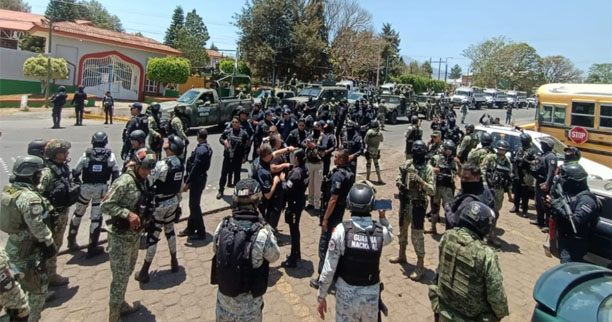 Peribán-Los Reyes, Michoacán, 3 de junio del 2023.– Elementos de Guardia Civil de la Secretaría de Seguridad Pública (SSP), de la Fiscalía General del Estado, de la Guardia Nacional y del Ejército Mexicano, realizaron un despliegue operativo en Peribán y Los Reyes para garantizar el libre tránsito, con lo cual tomaron el control y despejaron las vialidades.