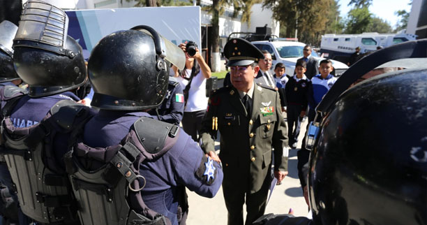 En un acto interpretado por las tropas como ofensivo, el militar retirado se presentó sin su uniforme de civil, propio de la institución a la que representa, sino que llegó enfundado a los colores de la Secretaría de la Defensa Nacional, institución señalada en múltiples ocasiones de actos de desaparición forzada y abuso de autoridad, recién involucrados en una agresión a tiros en contra de civiles en Periban.