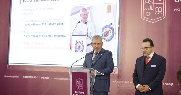 Morelia, Michoacán, 26 de diciembre de 2023.- El Instituto Mexicano del Seguro Social (IMSS), invierte 4 mil 661 millones de pesos, con lo que se contemplan hospitales nuevos en Morelia y Zitácuaro, se da continuidad al hospital de Uruapan, se rehabilitan siete hospitales y se proyecta la construcción de siete nuevas Unidades de Medina Familiar, anunció el gobernador Alfredo Ramírez Bedolla durante conferencia de prensa conjunta con el titular de la Representación del IMSS en Michoacán, Miguel Ángel Van-Dick Puga.