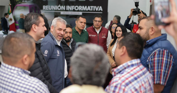 Uruapan, Michoacán, 3 de enero de 2024.– El gobernador Alfredo Ramírez Bedolla, sostuvo reunión con representantes de los sectores empresarial, transportista, turístico y comercio de Uruapan para informar avances de infraestructura para el desarrollo turístico y económico de la región.