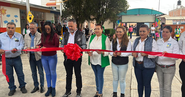 Luis Felipe León Balbanera, inaugura techumbre metálica en el Jardín de Niños Aristóteles