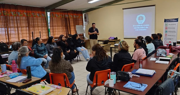 Durante la ponencia, impartida con el objetivo de promover acciones orientadas a una cultura de la paz, personal adscrito a la Dirección de Programas de Justicia Restaurativa del CMASC invitó a las personas asistentes a reflexionar sobre la idea de que el conflicto es una situación que en nuestras vidas puede estar presente y les recordó la importancia de resolverlo cuanto antes, a fin de evitar que este escale y se vean afectados.