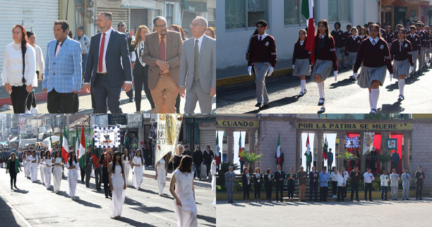 Acompañado por el secretario del ayuntamiento el Prof. Arturo Nolasco, la sindico Lidia Noemí Arévalo, oficial mayor Víctor Sandoval, contralor Martín Arredondo, tesorero municipal Jesús Moreno, cuerpo de regidores y directores de la administración, el Prof. Fernando Miguel Pérez Valdovinos, autoridades educativas y contingentes escolares iniciaron el desfile por la principal avenida de la ciudad.