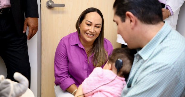 La presidenta honoraria del DIF, Grisel Tello invitó a las madres y padres de familia a realizar el tamiz auditivo a sus hijas e hijos durante el primer mes de vida y así poder atender el problema a tiempo, ya que la posibilidad de recuperar el sentido del oído se dificulta después de los cinco años.
