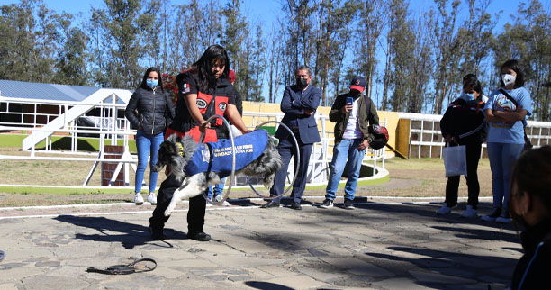 Por último, se presentó al ejemplar canino Manchas, de raza Border Collie, que ha colaborado en la búsqueda de restos humanos, en diferentes hechos ocurridos en la entidad; posteriormente, se dieron demostraciones de obediencia y de recorrido del circuito.