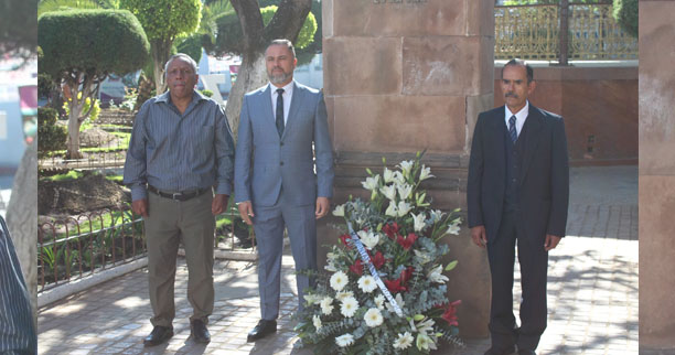 En el marco de la ceremonia protocolaria, el alcalde León Balbanera en compañía de autoridades educativas, colocó una ofrenda floral y montó una guardia de honor al pie en el busto a Benito Juárez.