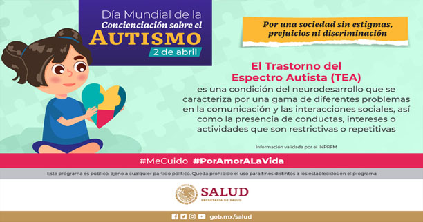 Especialistas de la Comisión Nacional de Salud Mental y Adicciones (Conasama) de la Secretaría de Salud hacen un llamado a la sensibilización social sobre el autismo que, de acuerdo con estimaciones, padece una de cada 100 personas en el mundo.