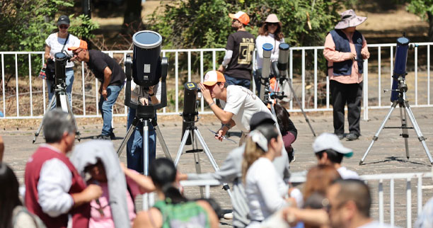 Desde las 10:52 horas, las y los asistentes pudieron observar de forma gratuita en telescopios y lentes especiales este fenómeno astronómico que en México no se repetía desde julio de 1991 y que no se presentará hasta marzo de 2052.