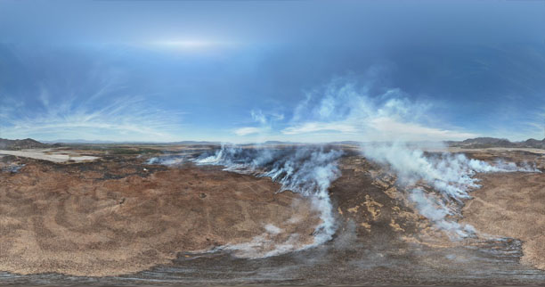 Santa Ana Maya, Michoacán, 9 de abril de 2024.- Brigadas del Gobierno de Michoacán trabajan en la atención y contención del incendio de tule que se registra en la zona del lago de Cuitzeo, en el municipio de Santa Ana Maya.