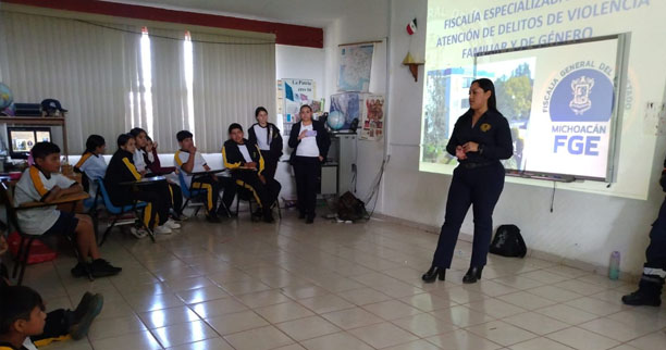 Morelia, Michoacán, a 10 de abril de 2024.- En primaria y secundaria de la localidad de Las Canoas, municipio de Copándaro, la Fiscalía General del Estado de Michoacán (FGE) impartió charlas a estudiantes y padres de familia sobre prevención del bullying.