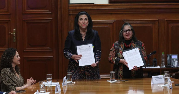 La presidenta de la Mesa Directiva de la Cámara de Diputados, Marcela Guerra Castillo, suscribió tres convenios de colaboración institucional con el Poder Judicial, que permitirán, afirmó, agilizar y eficientar los procesos en los que esta Cámara forma parte, como los juicios de amparo contra leyes, relacionados con la protección de derechos, y lograr resoluciones más prontas y expeditas que benefician y dan certeza a la ciudadanía.