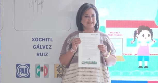 La candidata del PAN, PRI y PRD a la Presidencia de la República, Xóchitl Gálvez, asumió frente a niños el compromiso de terminar con la pobreza extrema en México.