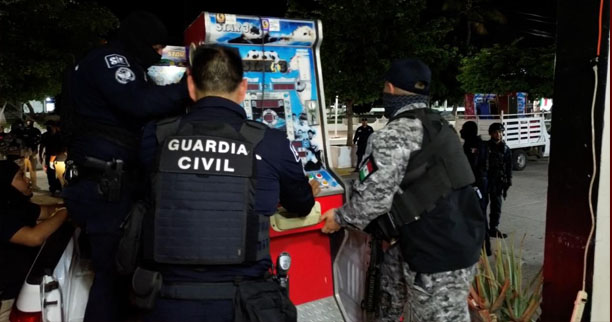 Esta operatividad también ha sido en apoyo a la Fiscalía General de la República (FGR), y se ha contado con la participación de la Secretaría de la Marina (Semar), tareas que derivaron en el aseguramiento de las mil 221 maquinitas en lugares presuntamente relacionados con la comisión de ilícitos.
