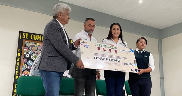 Zacapu, Mich., 21 de junio del 2024.- El Gobierno Municipal, encabezado por el Lic. Luis Felipe León Balbanera, y el Sistema DIF, dirigido por la Lic. Claudia Griselle Sanhua Pérez, realizaron la develación de la placa de la Certificación del programa ELVE 100% Municipal (Escuelas Libres de Violencia Escolar) en el plantel CONALEP Zacapu, destacando el compromiso con una educación segura y libre de violencia.