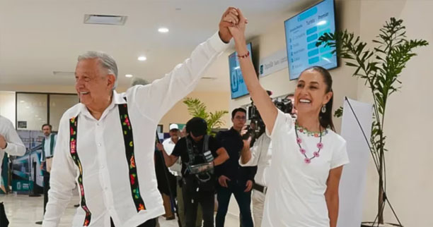 Las palabras del político tabasqueño estuvieron acompañadas por una fotografía donde se ve al fundador del Movimiento de Regeneración Nacional (Morena) levantando la mano de la virtual próxima presidenta de México, tras descender de su recorrido por el Tren Maya, en donde ambos supervisaron la obra del megaproyecto.