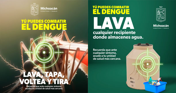 Morelia, Michoacán, 1 de julio de 2024.- La Secretaría de Salud de Michoacán (SSM) recuerda a la población mantener en el hogar la estrategia lava, tapa, voltea y tira todo aquello que acumule agua, con el propósito de evitar la reproducción del mosco Aedes aegypti, transmisor del dengue, zika y chikungunya.