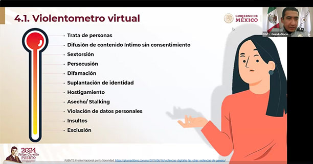 Por su parte, Alcaraz Hernández señaló que hay diferentes tipos de violencia virtual como la exclusión, los insultos, violación de datos personales, suplantación de identidad, entre otros. “Si identificamos en casa o en nuestras relaciones personales este tipo de tratos, son focos de alerta que no debemos dejar pasar; es importante buscar ayuda y tomar medidas como la configuración de privacidad y contraseñas seguras”.