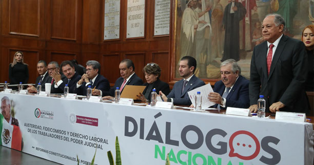 Magistrados, representantes del Consejo de la Judicatura Federal (CJF) y de los trabajadores del Poder Judicial, así como de gobiernos locales, y abogados, externaron sus posturas en los temas: Austeridad, fideicomisos y derecho laboral de los trabajadores del Poder Judicial, como parte de los diálogos nacionales sobre las reformas constitucionales al Poder Judicial que realiza la Cámara de Diputados.
