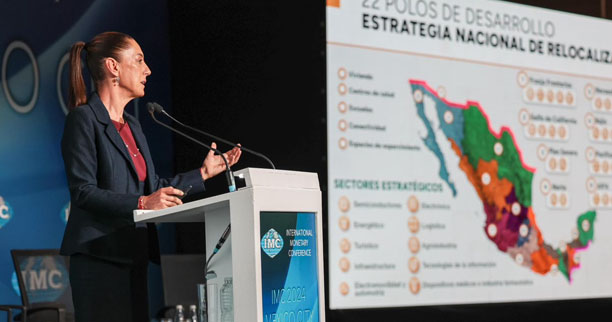 Ciudad de México a 09 de julio de 2024.- Continuar con la construcción de una Prosperidad Compartida, será el eje central del Gobierno de México en los próximos seis años, adelantó la virtual Presidenta electa de la República, Claudia Sheinbaum Pardo, tras exponer su proyecto de nación en la Reunión Anual de la International Monetary Conference (IMC), conformada por bancos multinacionales e instituciones de servicios financieros de todo el mundo.