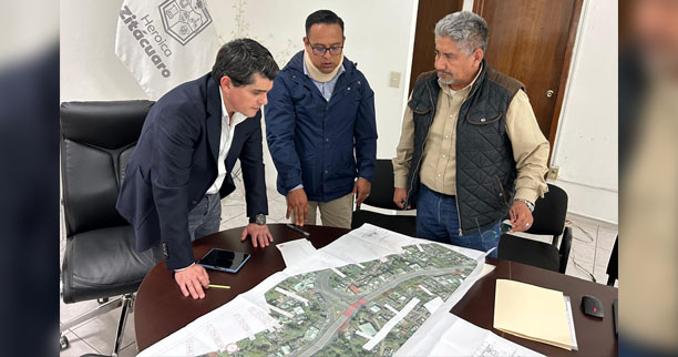Zitácuaro Mich. A 12 de julio de 2024.- El presidente municipal, Juan Antonio Ixtlahuac, sostuvo una reunión con representantes de la constructora Redes de Carreteras de Occidente, RCO, para ultimar detalles sobre la mega obra de la modernización de la salida a Morelia, que contempla la reestructuración de toda esta vialidad y parte de la zona, así como un paso a desnivel a la altura del Monumento a Ignacio López Rayón.