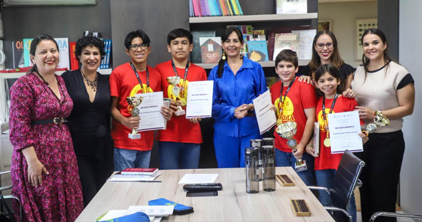 La titular de la Secretaría de Educación del Estado (SEE) felicitó a Santiago Castro Jiménez, Catalina Ruth Núñez Anaya, José Antonio Núñez Anaya y Emilio Santiago Barajas Ruiz, por su destacada participación en el certamen de habilidades matemáticas, que reunió a 600 estudiantes de 40 países.