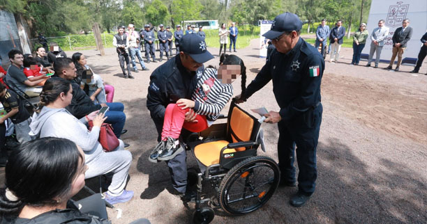 Morelia, Michoacán, 28 de agosto de 2024.- Con la entrega de seis sillas de ruedas a niñas y niños con discapacidad que son beneficiarios del Programa de Equinoterapia, la Secretaría de Seguridad Pública (SSP) contribuye en el desarrollo físico y psicomotriz de sus pacientes.