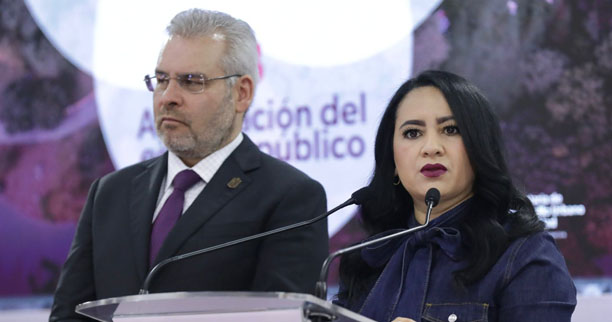 Participaron en la conferencia de prensa el secretario de Gobierno, Carlos Torres Piña; el titular del Secretariado Ejecutivo del Sistema Estatal de Seguridad Pública (SESESP), César Erwin Sánchez Coria; y la subsecretaria del Trabajo y Previsión Social de la Secretaría de Desarrollo Económico (Sedeco), Yunuén Mejía Béjar.