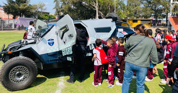 En el campo deportivo “5 de Febrero” se congregaron niñas, niños y adolescentes para conocer a las y los agentes de la corporación policial, así como a sus agrupamientos Táctico Operativo Delta, de Seguridad Vial, Equinos y Caninos. Con demostraciones de sus diversas actividades, la comunidad estudiantil mostró interés en el trabajo que realizan los policías estatales para prevenir el delito.