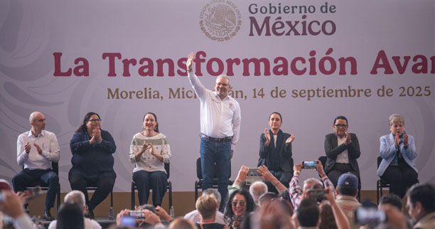 Morelia, Michoacán, 14 de septiembre de 2025.- Bajo el liderazgo de la presidenta Claudia Sheinbaum Pardo, Michoacán avanza en materia educativa e infraestructura, destacó el gobernador Alfredo Ramírez Bedolla, al acompañarla en su informe regional que presentó en Morelia ante miles de personas.