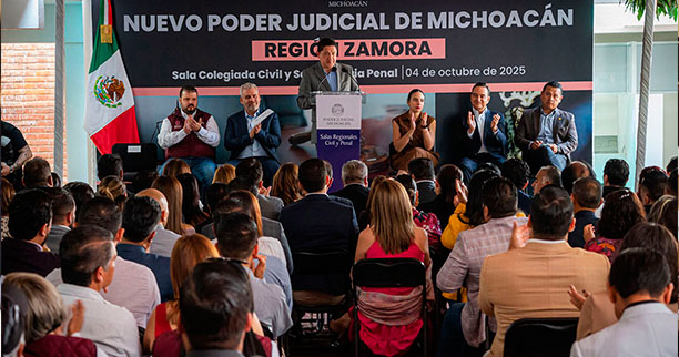 Zamora, Michoacán, 4 de octubre de 2025.“El reto es cambiar la historia del Poder Judicial de Michoacán, hacerlo mejor en beneficio de las y los justiciables. La reforma judicial tenía como finalidad desconcentrar las salas civiles y penales que se encontraban en Morelia, con esta Reforma se acerca la justicia a todas las regiones del estado, en este caso Zamora atenderá dos distritos judiciales: Zamora y Zacapu”, afirmó el magistrado presidente Hugo Alberto Gama Coria.