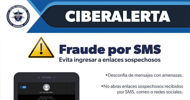 Morelia, Michoacán, 14 de octubre de 2025.- Agentes de la Secretaría de Seguridad Pública (SSP), detectaron a través de labores de cibervigilancia mensajes de texto que contienen enlaces sospechosos frecuentemente utilizados para robar tu información personal.