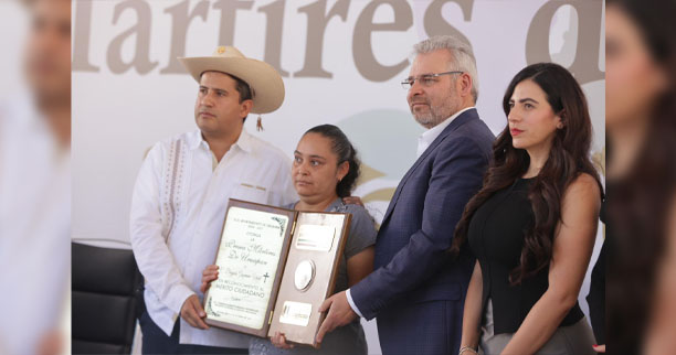 En este marco, el mandatario, acompañado de autoridades de los tres órdenes de gobierno, entregó la Presea Mártires de Uruapan a familiares del policía municipal, Vidal Brígido Guzmán, fallecido en cumplimiento de su deber; a la Secretaría de Seguridad Pública, Tránsito y Vialidad Municipal; y a los agentes locales heridos en cumplimiento de su deber, Daniela Arévalo, Yanuaria Rodríguez y Hugo Caro.