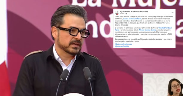 “Celebro el anuncio de la construcción del nuevo hospital del IMSS en Zitácuaro, que dará inicio en el primer trimestre de 2026, como parte del Plan Michoacán por la Paz y la Justicia, impulsado por la Presidenta de México, Claudia Sheinbaum Pardo, este proyecto fortalecerá la atención médica en toda la región Oriente del estado y se suma a otras acciones en materia de seguridad, bienestar y desarrollo social que mejorarán la calidad de vida de las familias michoacanas, agradezco a la Presidenta Claudia Sheinbaum Pardo y al Gobernador Alfredo Ramírez Bedolla por su respaldo e inclusión de Zitácuaro en esta gran estrategia nacional, que contempla 39 proyectos de infraestructura en salud, educación y bienestar, con una inversión superior a 7,800 millones de pesos, Con este paso, reafirmamos que Michoacán y Zitácuaro avanzan con fuerza, esperanza y unidad.”
