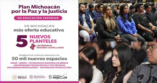 Las nuevas universidades se suman a los esfuerzos de los gobiernos federal y estatal para ampliar la matrícula de educación superior en 50 mil nuevos espacios, a través de instituciones como la UNAM, la UMSNH, el Tecnológico Nacional de México, las universidades tecnológicas y politécnicas, la Universidad Benito Juárez y la Intercultural.