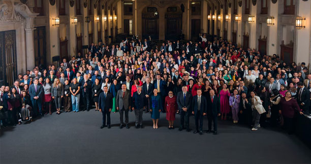 La presidenta Claudia Sheinbaum reunió este jueves a diputadas, diputados, senadoras y senadores de MorenaPT PVEM en Palacio Nacional para agradecerles la aprobación del Paquete Económico 2026 y de las reformas consideradas esenciales para su gobierno.