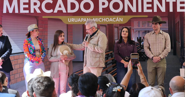 Uruapan, Michoacán, 28 de noviembre de 2025.- El gobernador Alfredo Ramírez Bedolla y la presidenta municipal de Uruapan, Grecia Quiroz García, inauguraron el nuevo Mercado Poniente y su cruce seguro, infraestructura complementaria al teleférico con una inversión de 16 millones de pesos.
