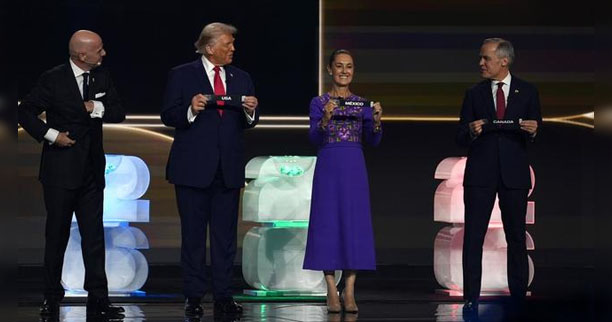 La Presidenta de México, Claudia Sheinbaum Pardo, participó en el Sorteo Copa Mundial FIFA 2026 en el que se definió que la Selección Mexicana será cabeza de serie del Grupo A y jugará contra las selecciones de Sudáfrica, Corea del Sur y el ganador de la eliminatoria de repechaje entre Dinamarca, Irlanda, Macedonia del Norte y República Checa.