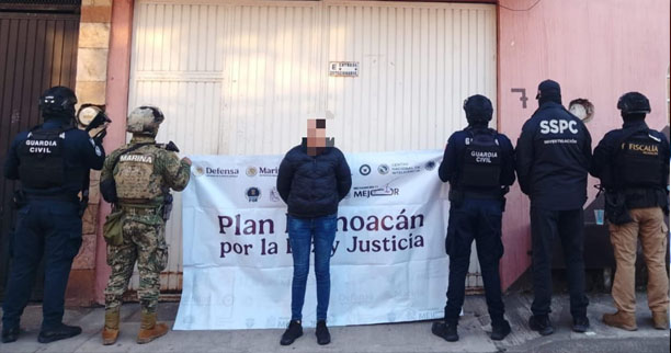 Uruapan, Michoacán, 13 de enero de 2026.- La Secretaría de Seguridad Pública (SSP) en coordinación con las secretarías de Seguridad y Protección Ciudadana (SSPC) y de Marina (Marina) brindó acompañamiento a la Fiscalía General del Estado (FGE) en la cumplimentación de tres órdenes de cateo en el municipio de Uruapan, donde se detuvo a una mujer y se aseguraron envoltorios con droga, dispositivos electrónicos y placas de circulación, en Uruapan.