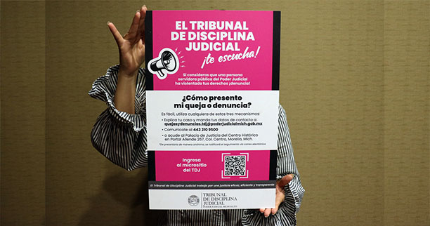 Morelia, Michoacán, 10 de abril de 2026. El Tribunal de Disciplina Judicial (TDJ) es el órgano encargado de investigar y resolver las faltas administrativas atribuidas a las personas servidoras públicas del Poder Judicial de Michoacán, con el propósito de garantizar que su actuación se apegue a los principios de legalidad, imparcialidad, honradez, profesionalismo y respeto a los derechos de las personas.