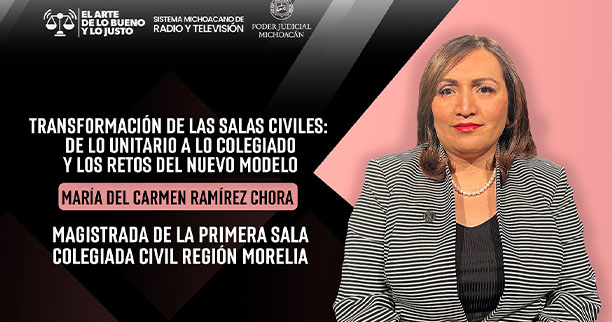 Morelia, Michoacán, a 13 de abril 2026.- En una nueva emisión del programa El Arte de lo Bueno y lo Justo, la magistrada María del Carmen Ramírez Chora abordó la transformación de las salas civiles del Poder Judicial de Michoacán tras la reforma judicial, así como los principales retos que implica la implementación del nuevo Código Nacional de Procedimientos Civiles y Familiares.